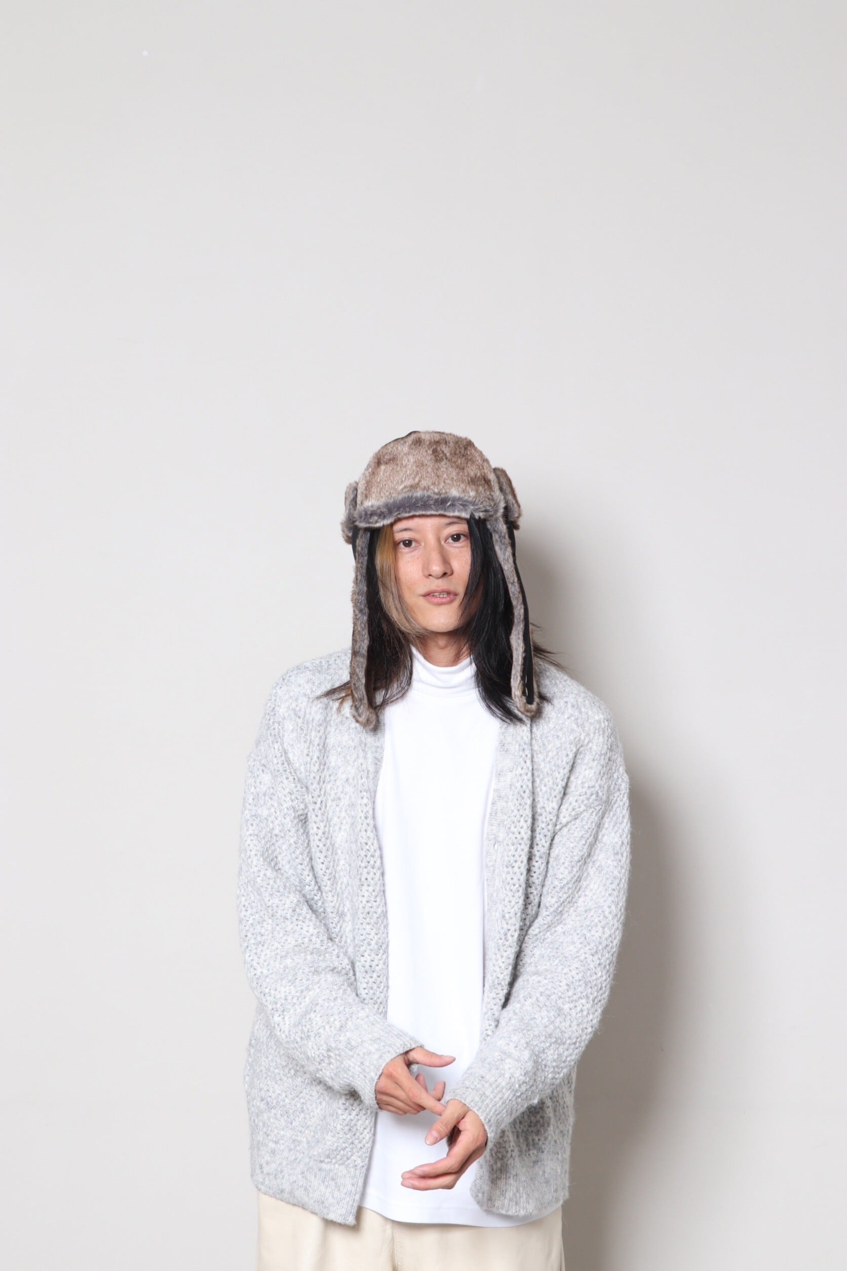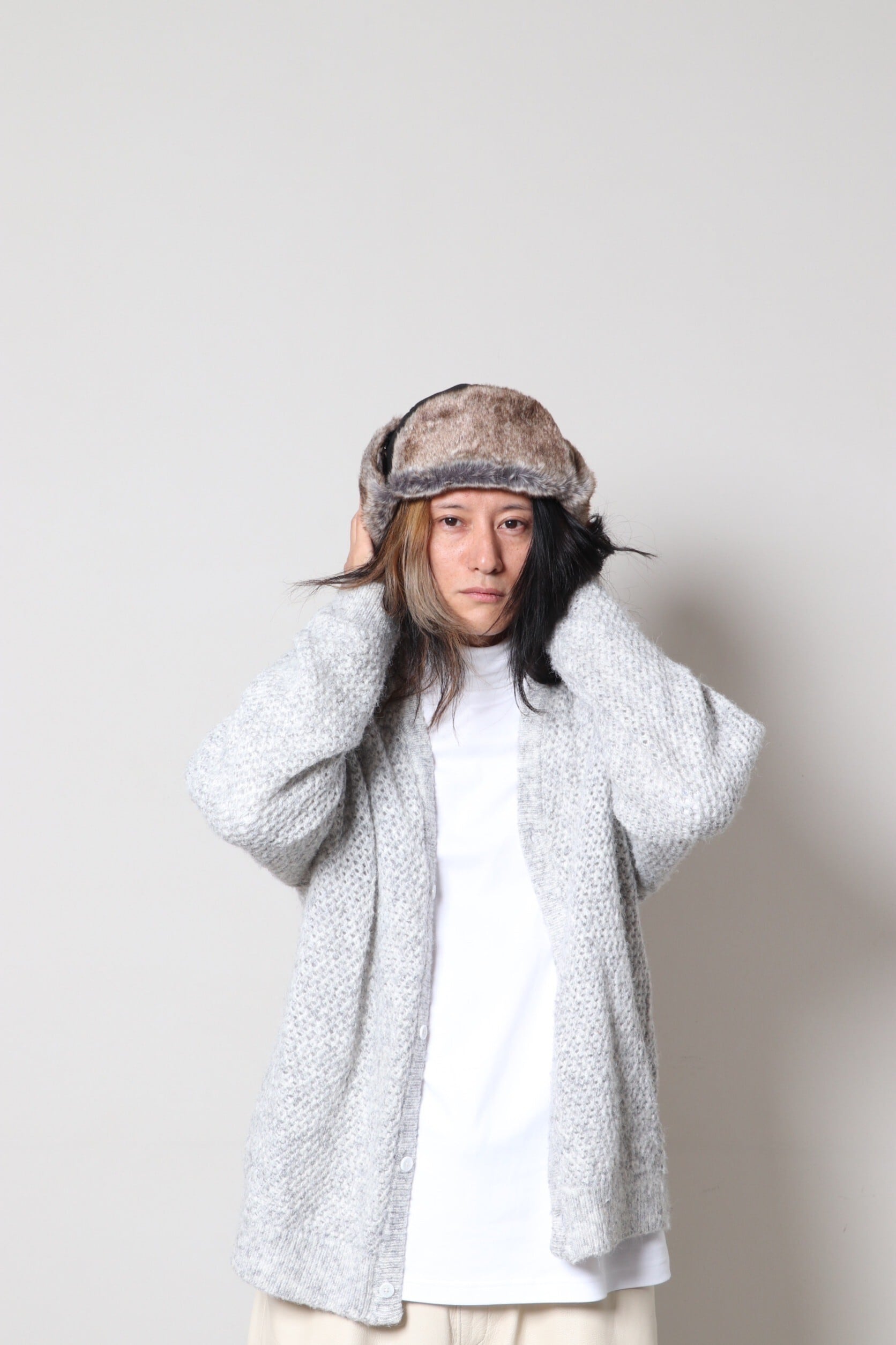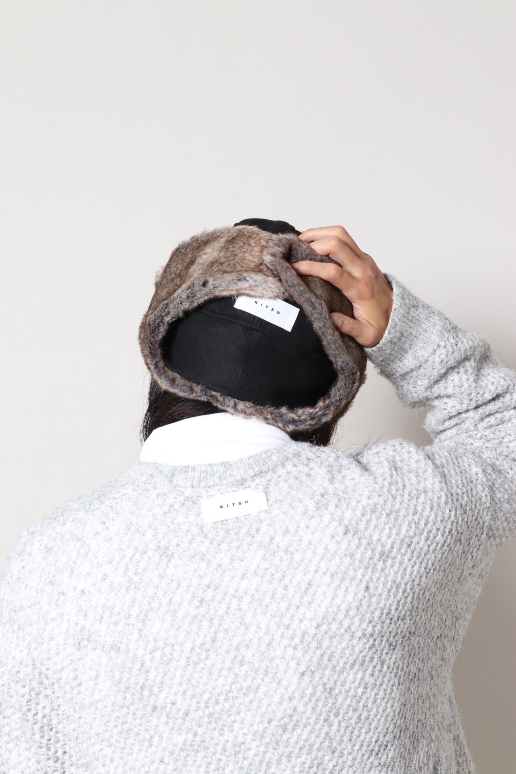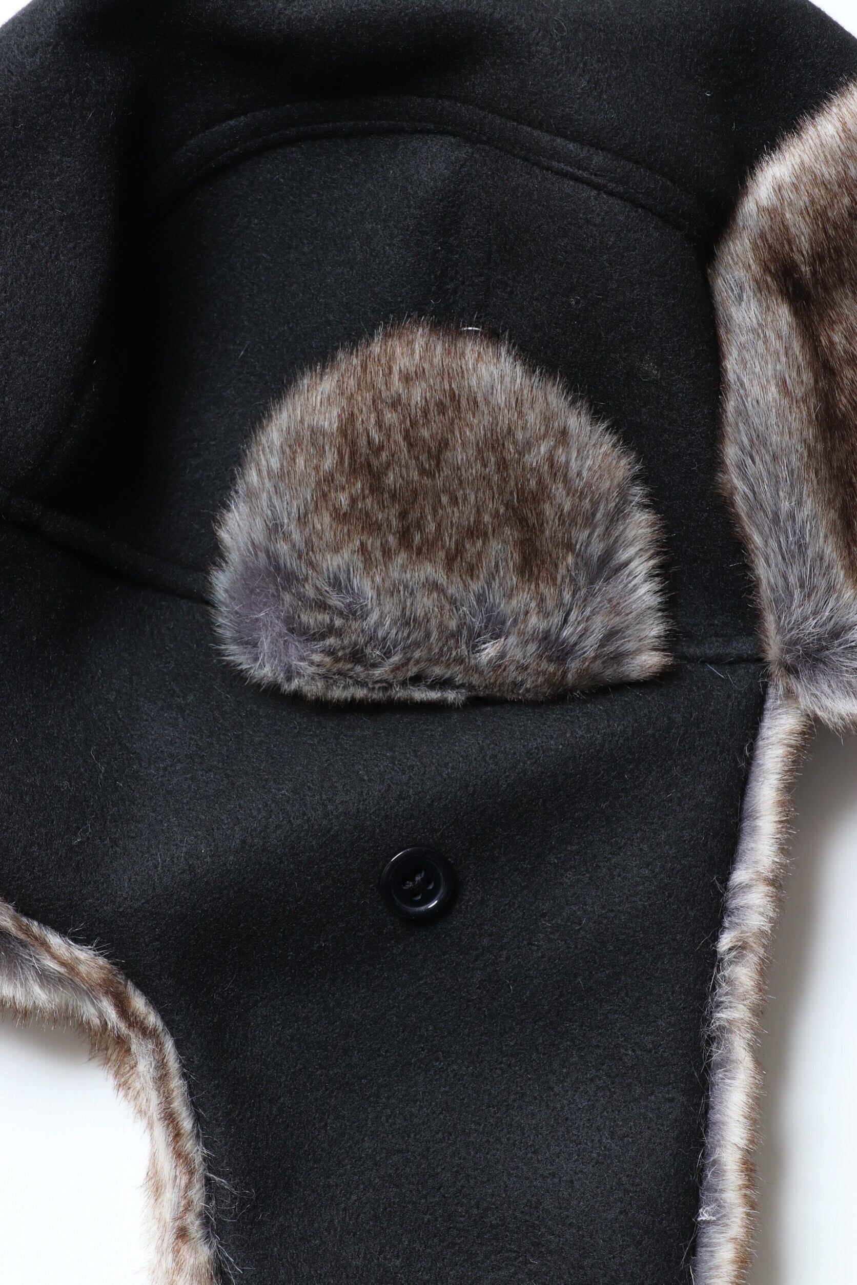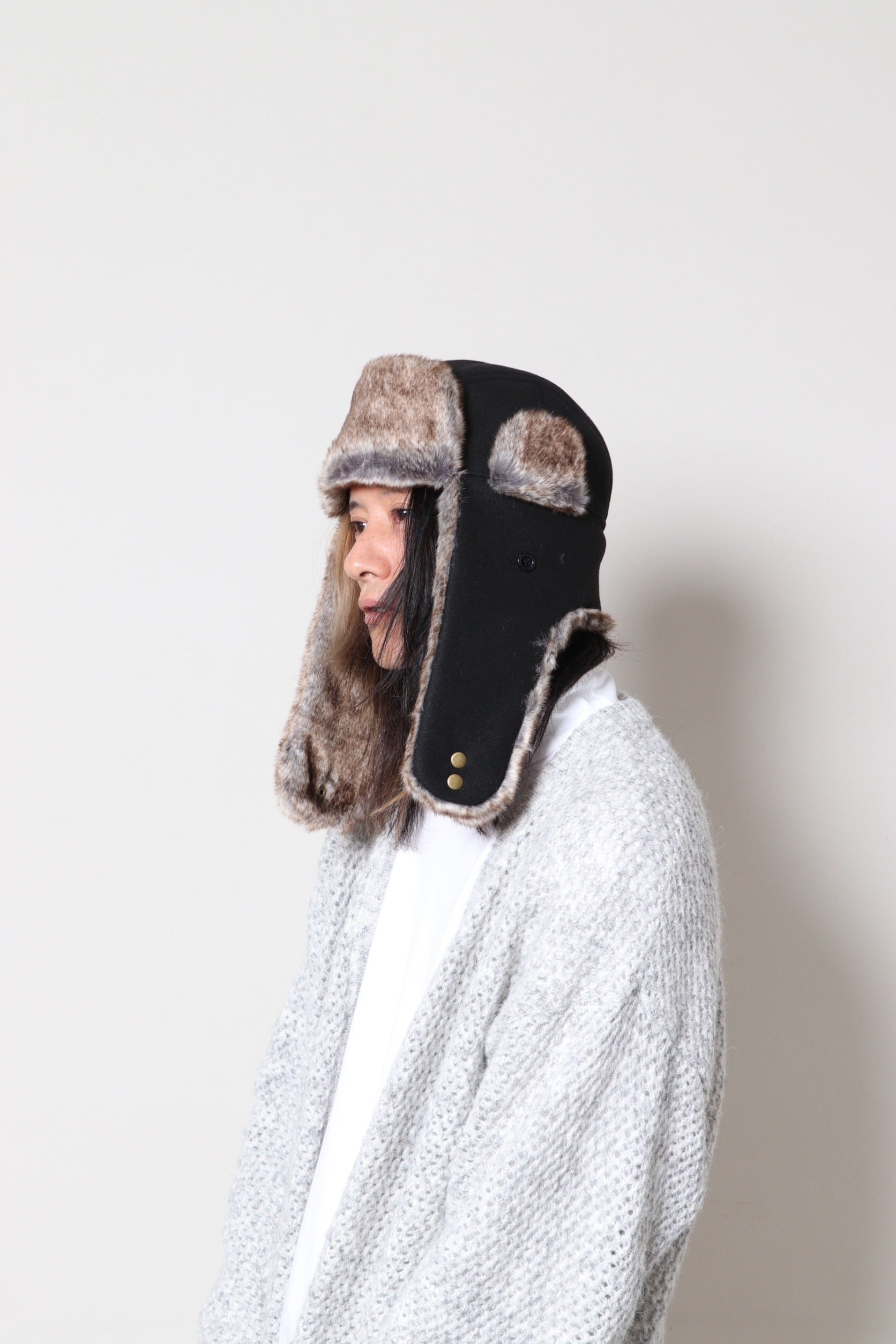防風&防寒のフライトキャップとしての機能性はそのままに、フェイクファーの素材感がよりファッショナブルな表情に。